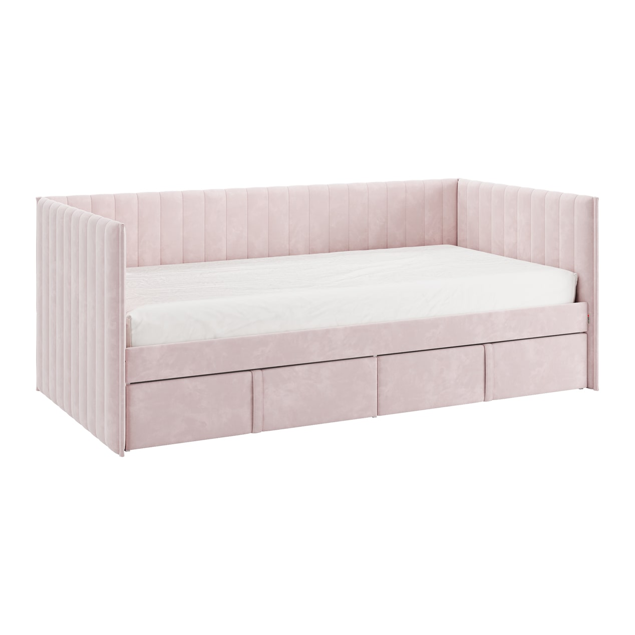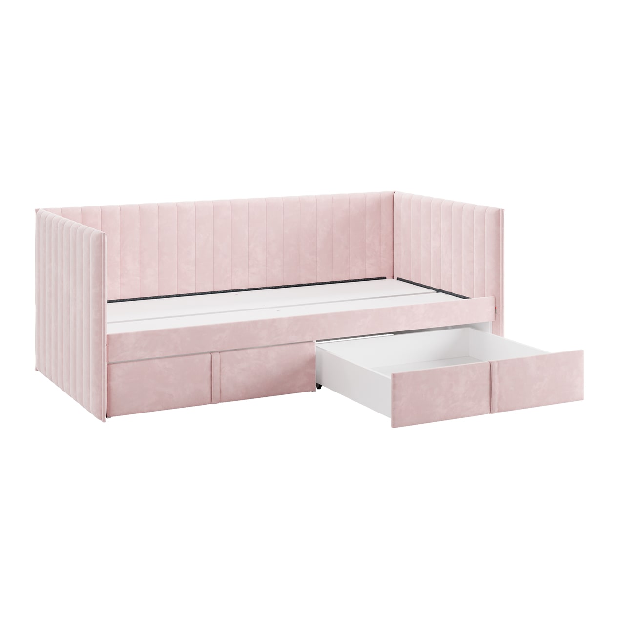 Кровать с ящиками Твикс (Софа) 90х200 см – это идеальное решение для компактного и функционального обустройства спальни или детской комнаты. Изготовленная из высококачественных материалов, таких как ДСП толщиной 16 мм, мягкого наполнителя и велюра, она сочетает в себе современный дизайн и практичность.