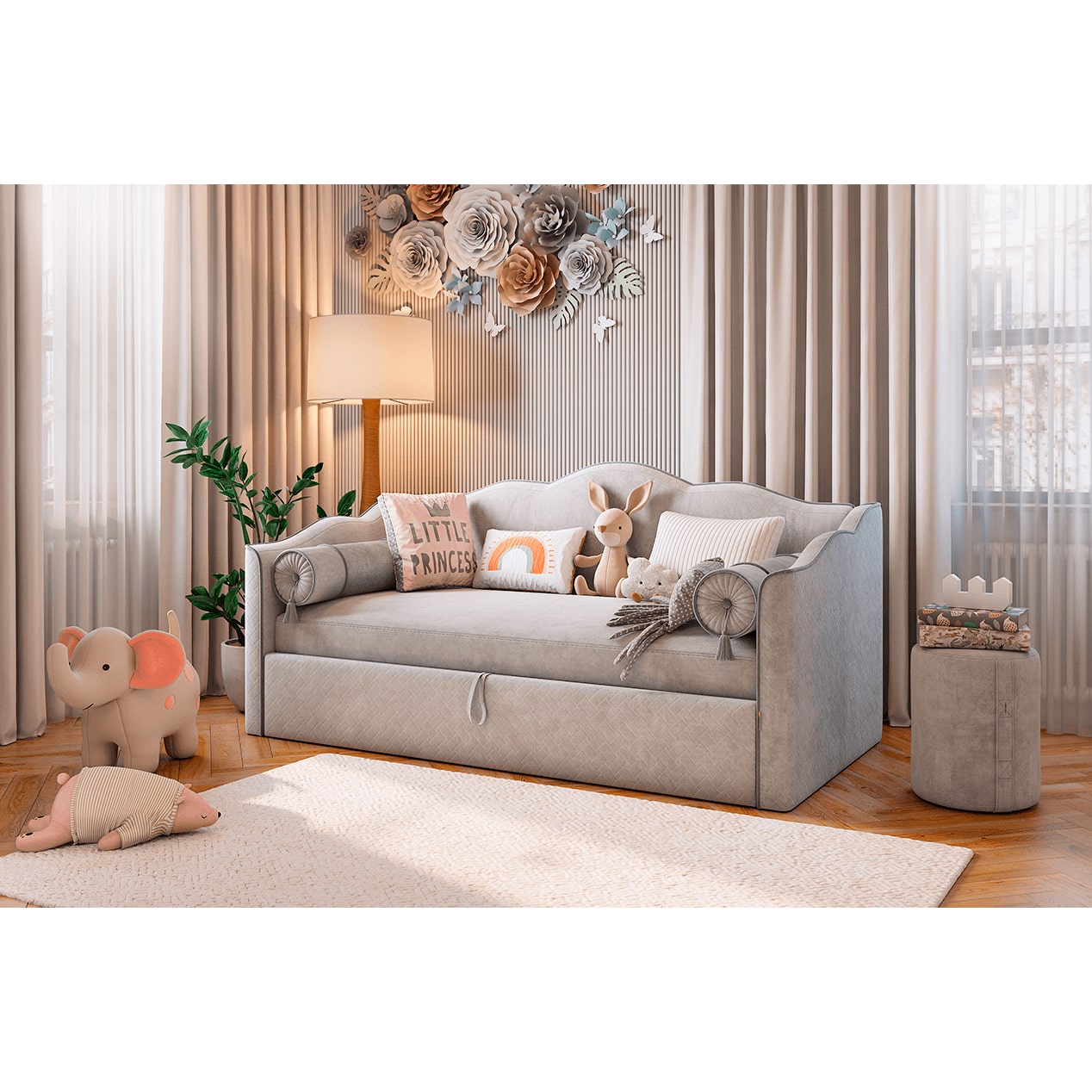 Кровать-софа Лея К1 90х200 крем (велюр)/латте (велюр)