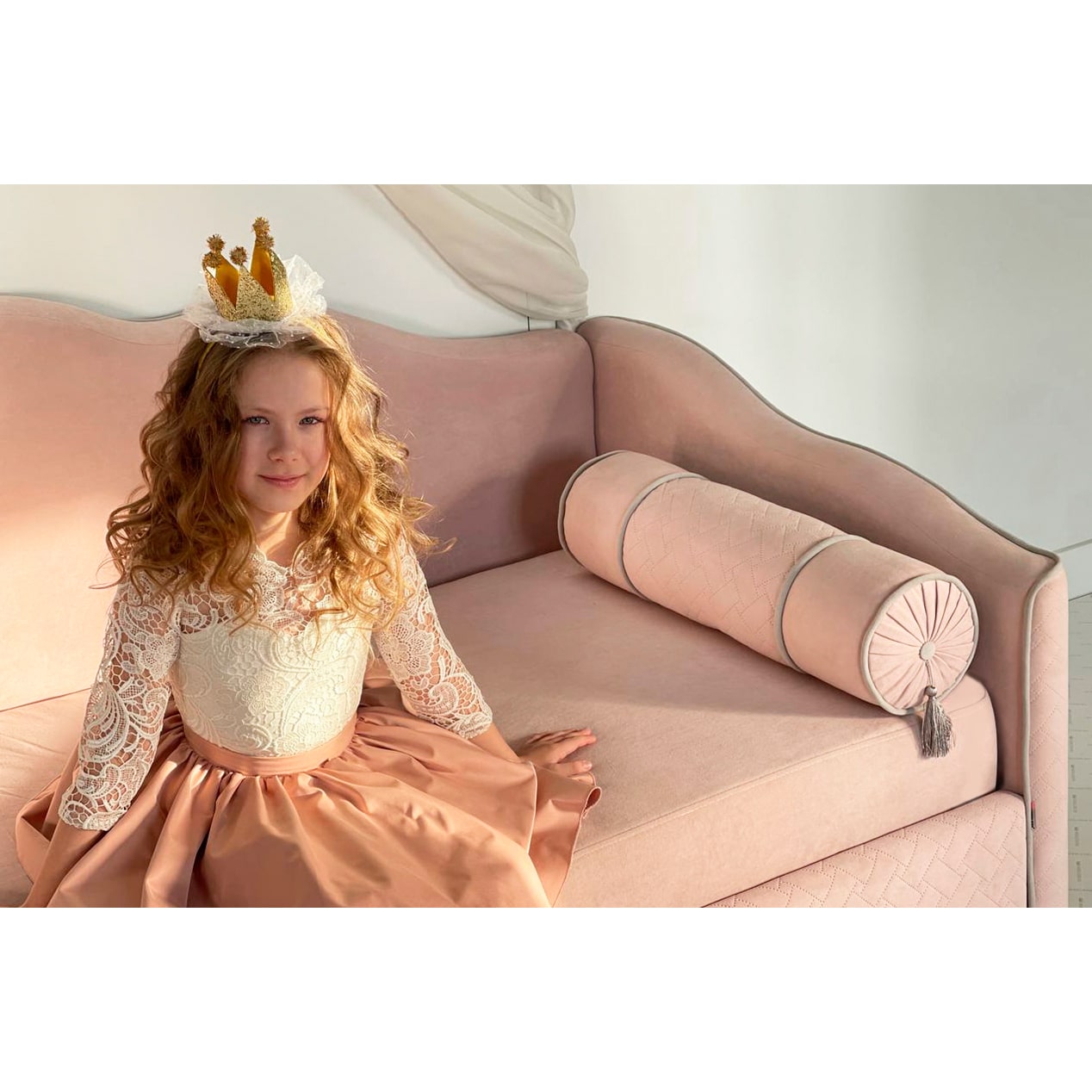 Кровать-софа Лея К1 90х200 нежно-розовый (велюр)/галька (велюр)