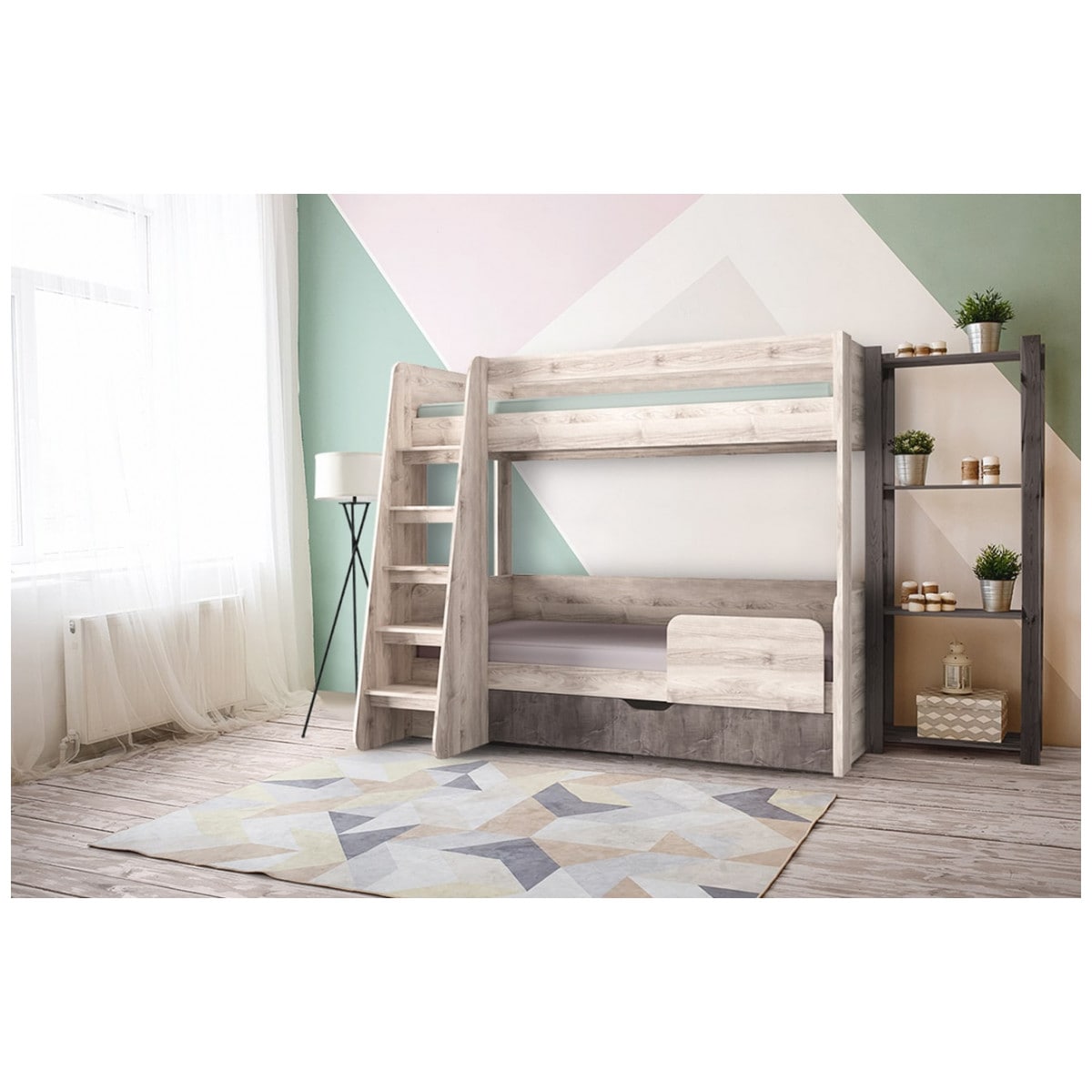 Кровать двухъярусная JAZZ – оптимальное решение организации зоны отдыха и сна для двух персон, если нет возможности установить две отдельные кровати. Кровать по конструкции имеет два яруса, расположенные друг над другом. Нижний ярус имеет вместительный бельевой ящик. Основания кровати представлено щитами ЛДСП.