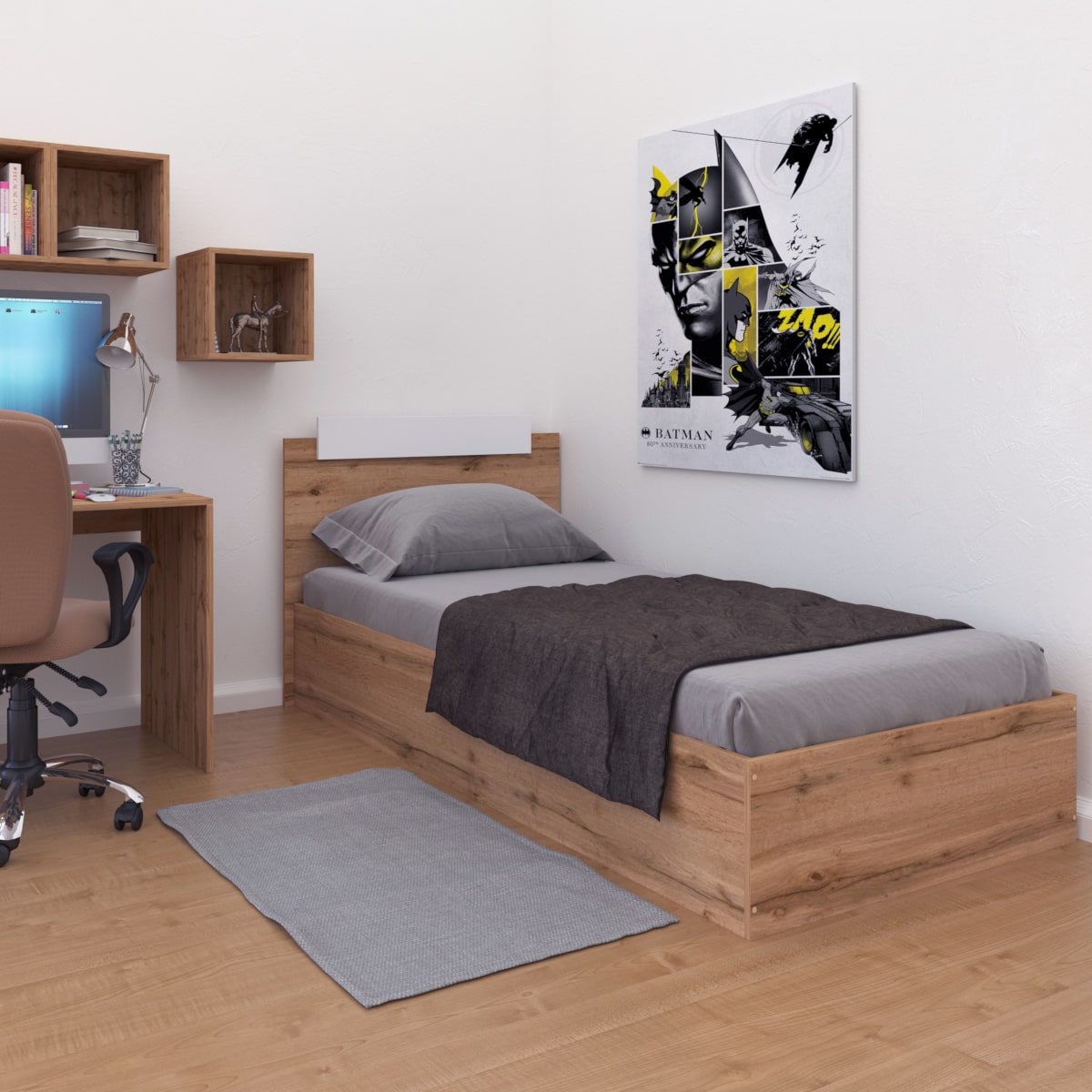 Классная кровать, брали в детскую, белая мебель уже стояла. Переживали, что цвет будет отличаться. Все просто супер стало, смотрится как единый комплект. Качество отличное, запахов посторонних неприятных нет. Довольны, рекомендуем