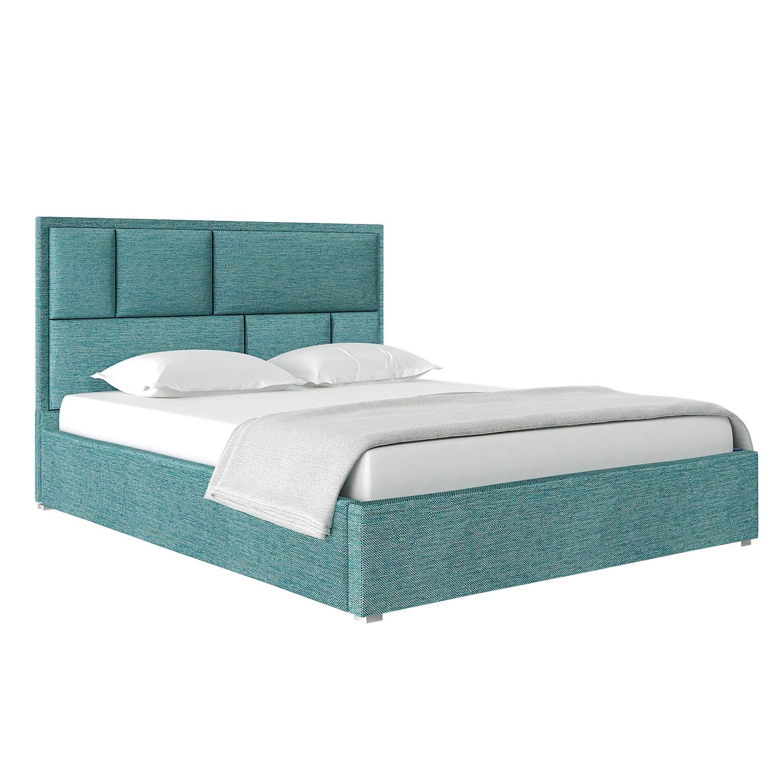 Кровать полностью мягкая, у нее мягкое изголовье.