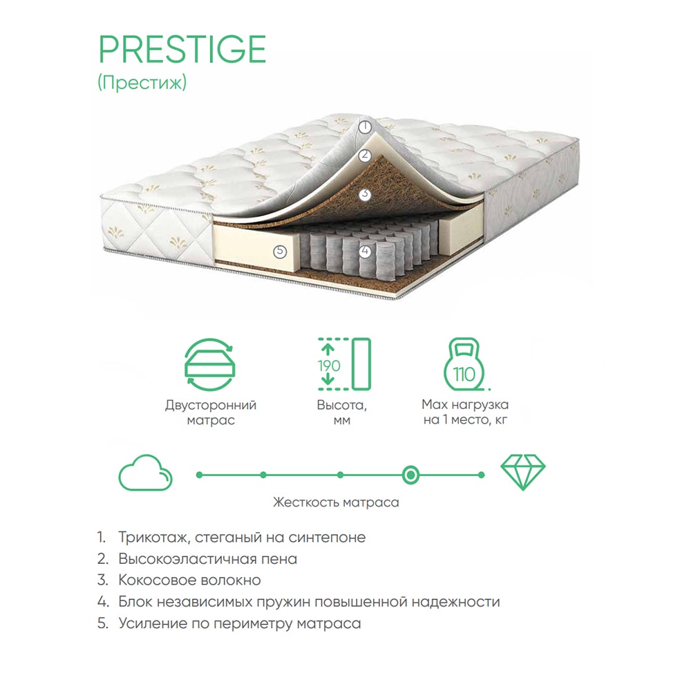 Кокос: наполнитель из спрессованных волокон кокосового ореха, пропитанных специальным составом на основе натурального латекса. Чрезвычайно прочен и долговечен, придает жесткость матрасу.