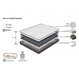Пятивитковый пружинный блок боннель: соединенный спирально, с последующим уменьшением радиуса опорного витка, что обеспечивает упругость пружины и предотвращает трение и скрип. Усиление достигается за счет пенополиуретановых вставок и двойных пружин по периметру. Плотность 115 пружин на квадратный метр.