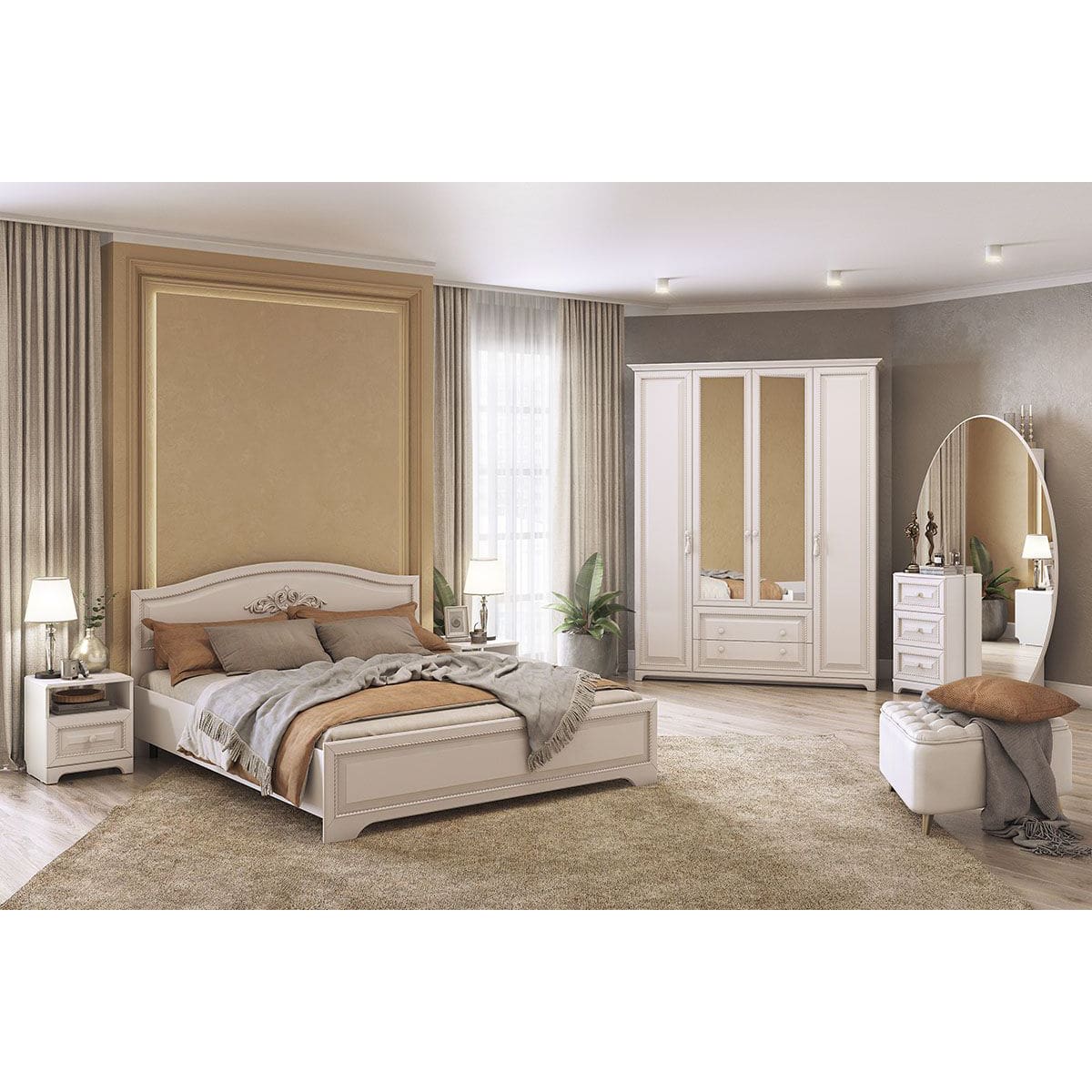 В состав комплекта входит: Тумба прикроватная Белла 400x360x460 мм 2 шт Шкаф комбинированный (зеркало) Белла 1050x430x1760 мм 1шт Кровать 1.4 (комфорт) Белла 1450x2040x930 мм 1шт Шкаф 4-створчатый Белла 1690x600x2150 мм 1шт
