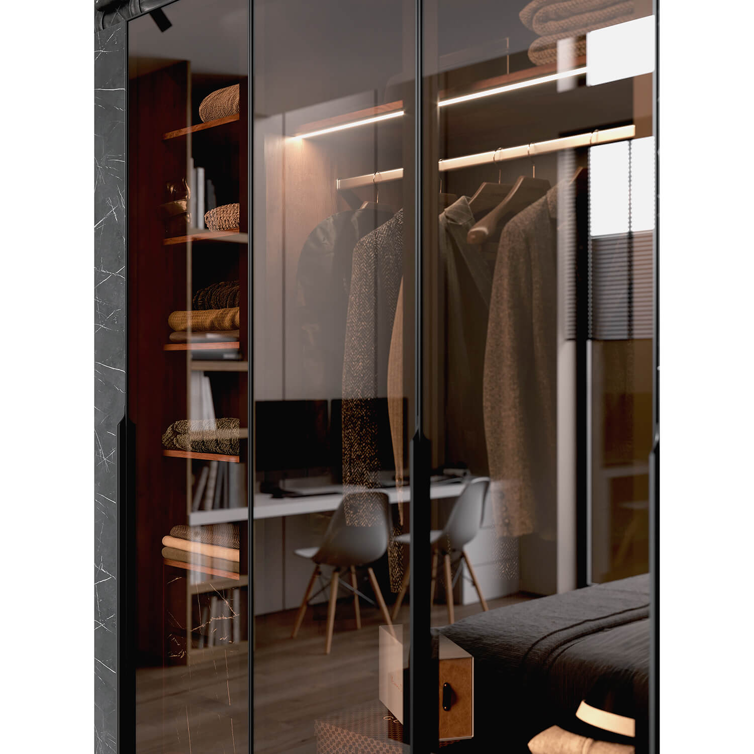 Серия мебели для спальни “Браун” в цвете Таксония/Мрамор неро маркина представляет собой элегантное и стильное решение для создания уютной атмосферы в вашей спальне. Мрамор придает мебели изысканный и роскошный вид, а Таксония добавляет теплые нотки и создает гармоничное сочетание с черным цветом.