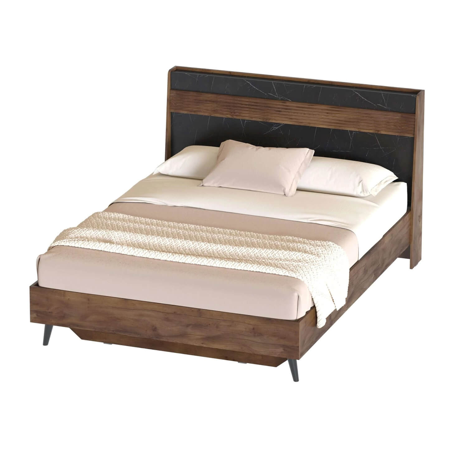 5.Кровать двуспальная Браун 1600х2000 Таксония/Мрамор Неро маркина 1670x2150x1010 мм.