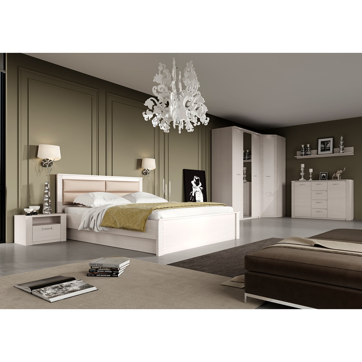 Спальный гарнитур с нежным названием "Элана" такой же мягкий и романтичный. В нем воплощены самые актуальные тенденции мебельной индустрии, основой которых сегодня является акцент на мягкие, природные, естественные линии. Все это отражается в деталях коллекции: фрезерованные планки, подсветка, мягкие элементы кровати, - делают эту спальню изысканной и необыкновенной.