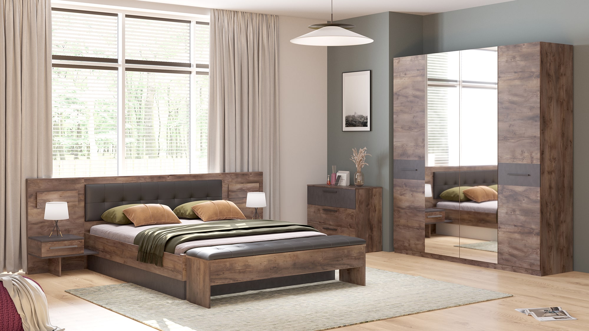 Спальный гарнитур "Глазго" обеспечивает комфорт и уют в спальне, создавая идеальное место для отдыха и сна. А благодаря компактности останется место и для других функциональных предметов, которые обязательно должны быть в комнате.
