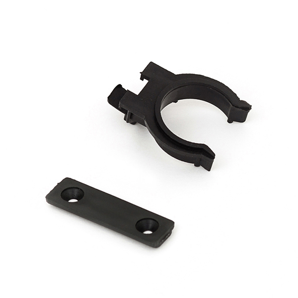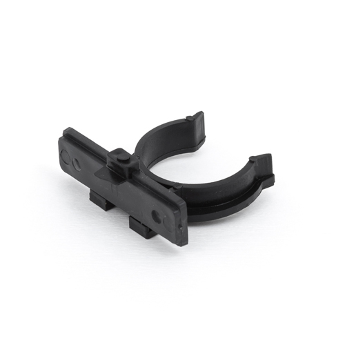 Клипса к ножке цокольной с креплением цоколя ДСП, чёрная, с планкой, пластик