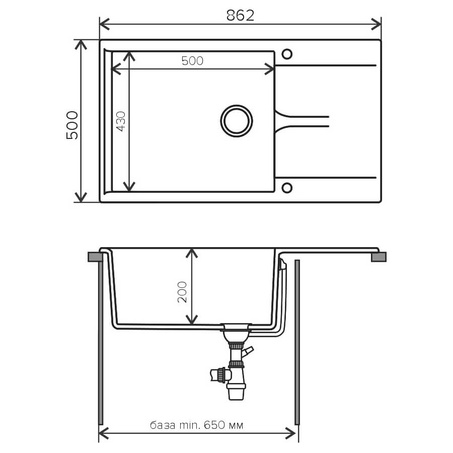 В комплекте: набор сливной арматуры с нержавеющим клапаном и переливом, сифон.