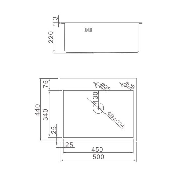 Мойка врезная нерж. 50х44 AFLORN, толщина 3,0 мм, цвет Сатин, с сифоном.