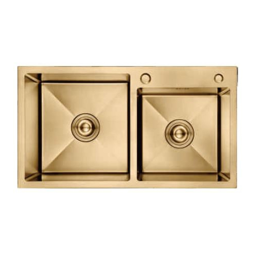 Мойка врезная нерж. 78х43 двойная AFLORN, толщина 3,0 мм, цвет Золотой Сатин, с сифоном.