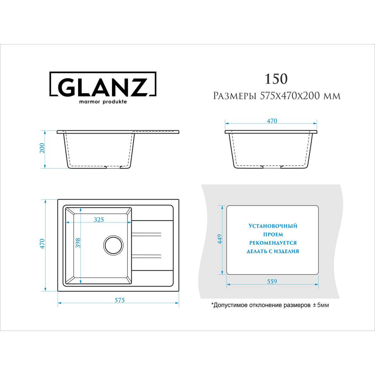 Установочный проем: 449x559 мм