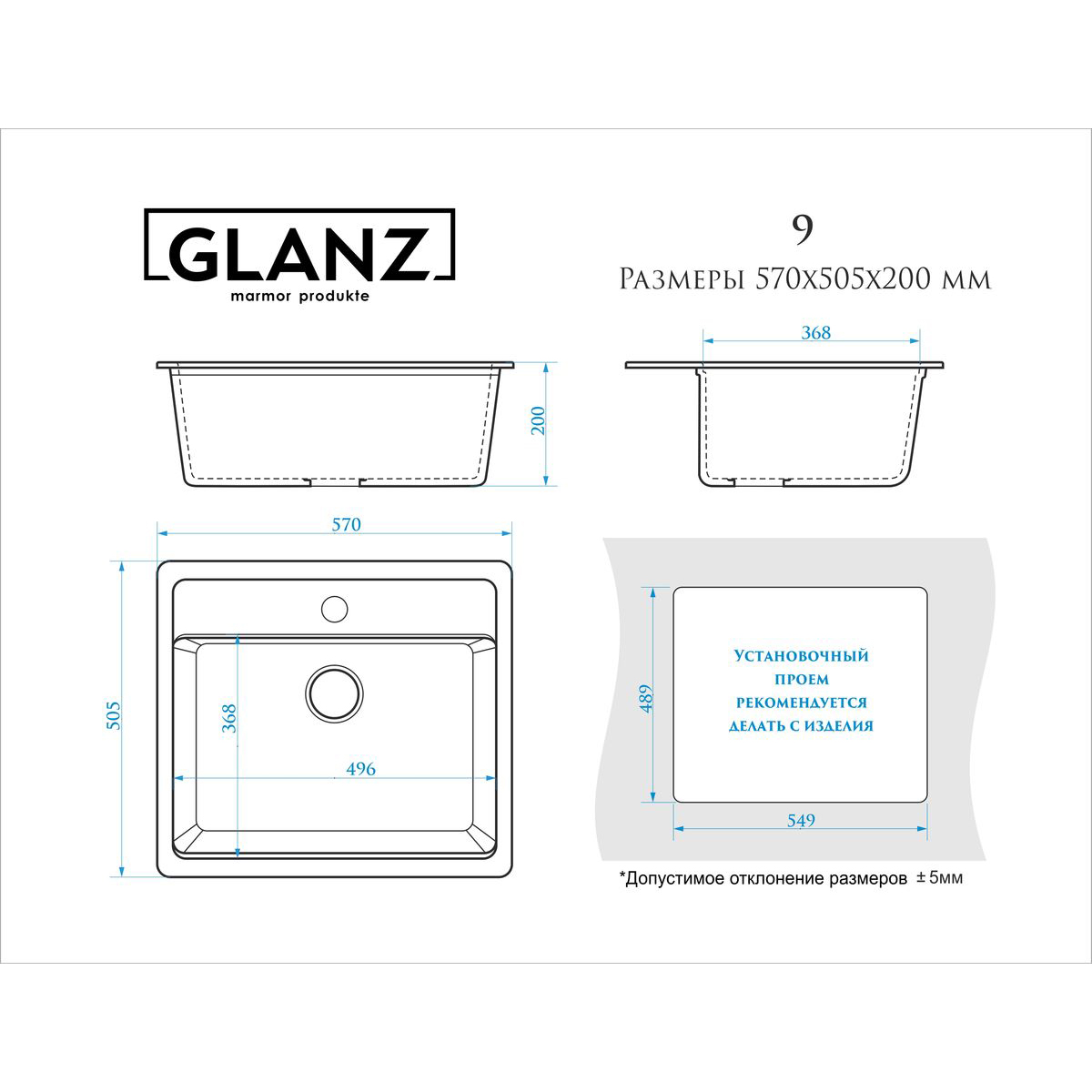 Установочный проем: 549x489 мм