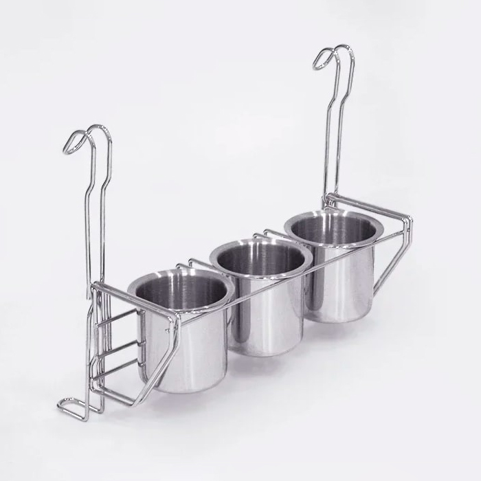 Стакан с держателем на рейлинг тройной LS263B от бренда Lotti, размер 340x150x280 мм., в цвете хром - емкость для хранения столовых приборов, размещаемая на рейлинговой перекладине.