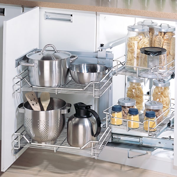 Механизм выкатной "Волшебный уголок" 480х(860~960)х560, модуль 900-1000мм, левый, плавного закрывания, двойного выдвижения PTJ017HA, хром