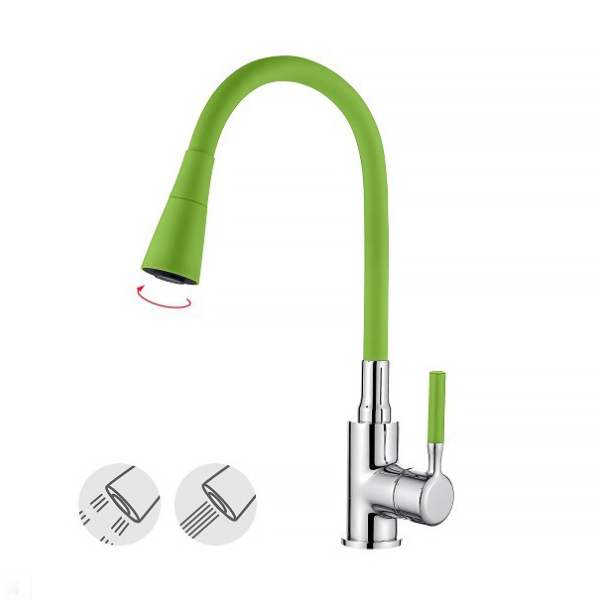 Крепление: универсальная гайка. Ф35 Материал: Силумин С силиконовым изливом. Подводка для воды в комплекте.