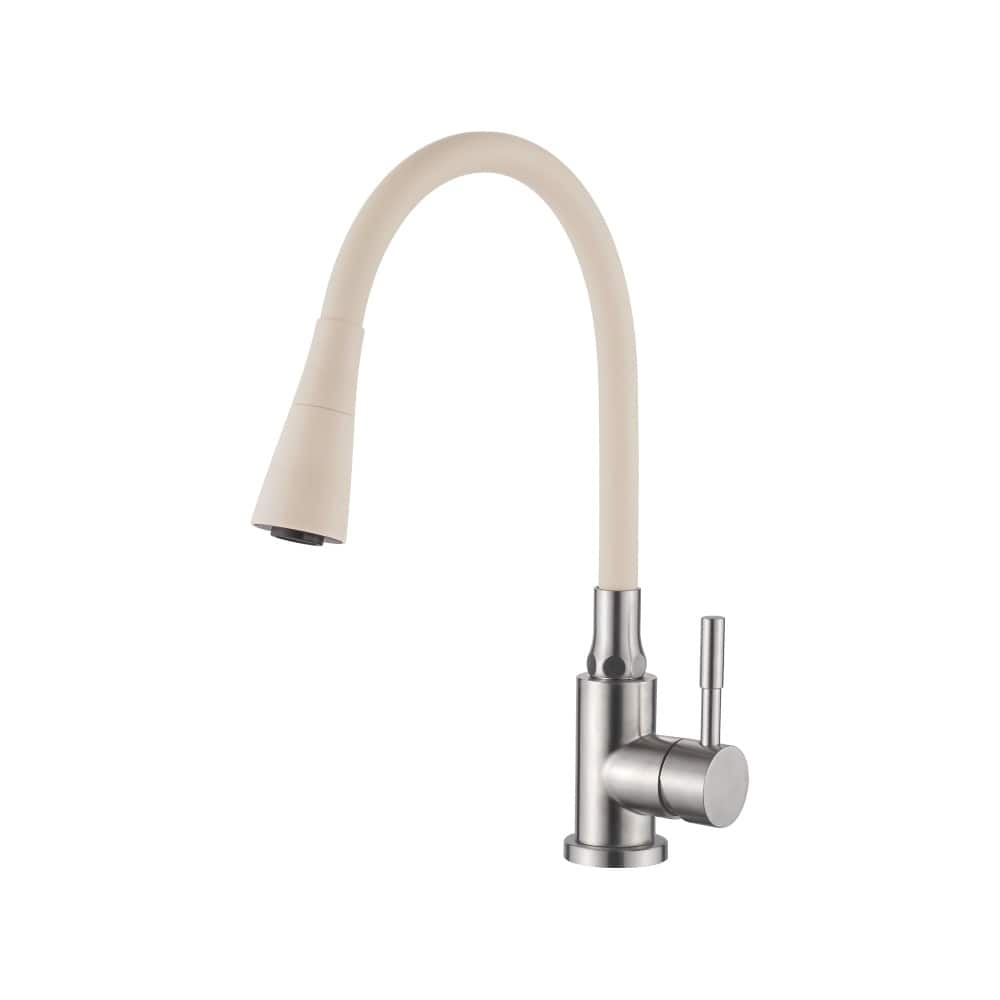 Смеситель для кухни Accoona A9890H-3 с силиконовым изливом Бежевый/Нержавеющая сталь