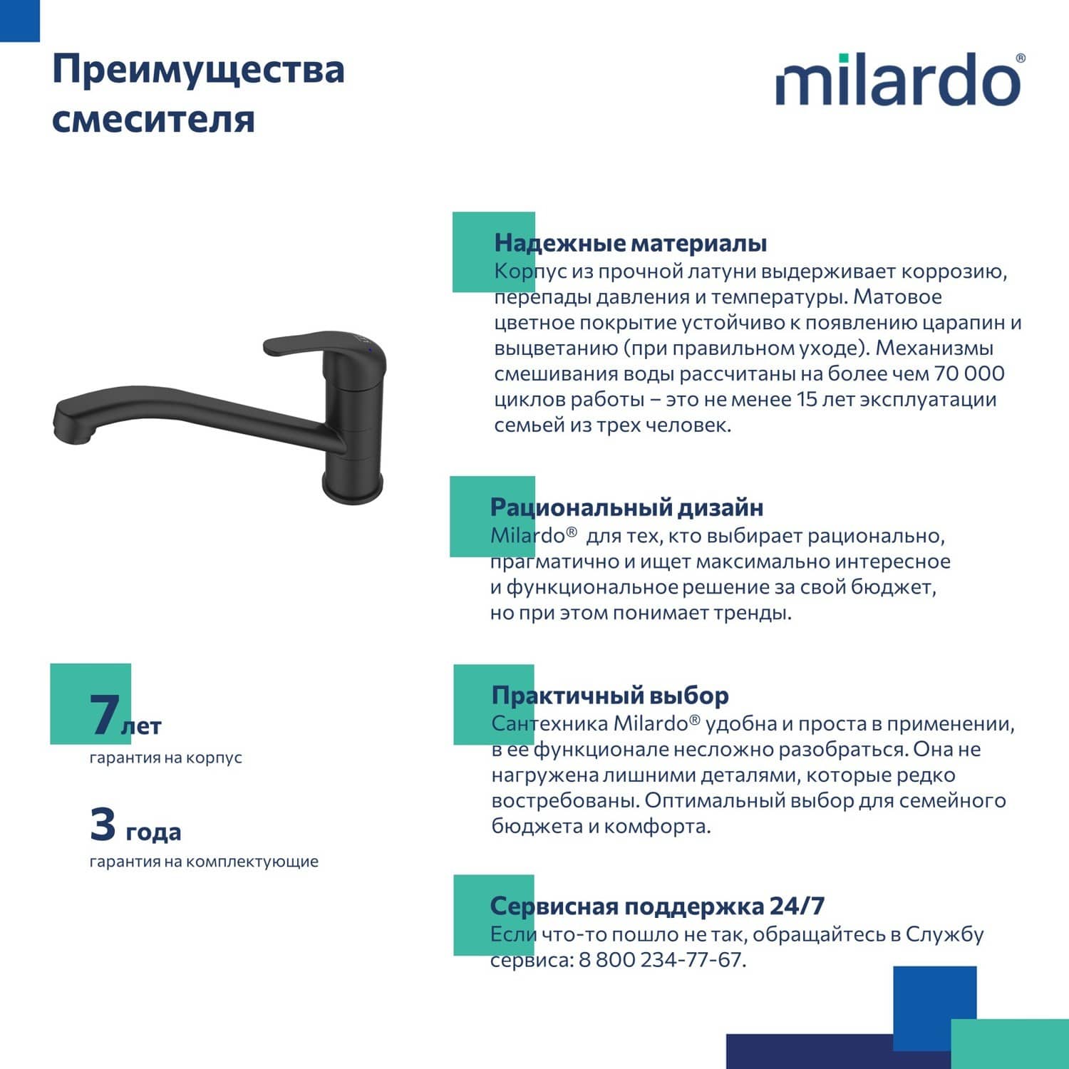 Смеситель для кухни, однозахватный, латунь, никель-хромовое покрытие, цвет - черный матовый, керамический картридж 35 мм, пластиковый аэратор. В комлекте: гибкая подводка, крепёж. Упаковка: коробка, микрогофрокартон, индивид. мешок.