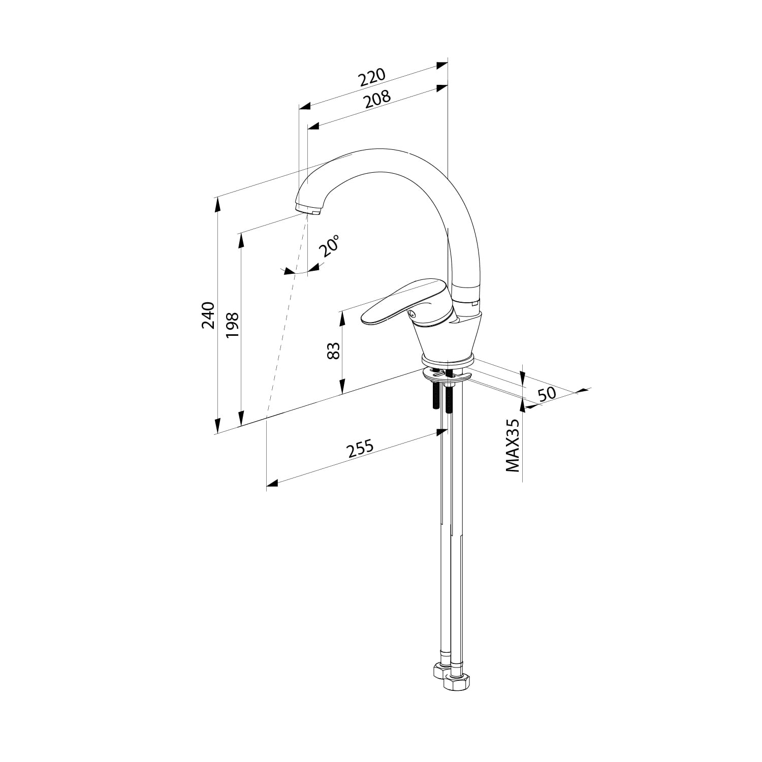 Смеситель для кухни, однозахватный, латунь,никель-хромовое покрытие, цвет - хром, керамический картридж 35 мм, пластиковый аэратор. В комлекте: гибкая подводка, крепёж. Упаковка: коробка, микрогофрокартон, индивид. мешок.