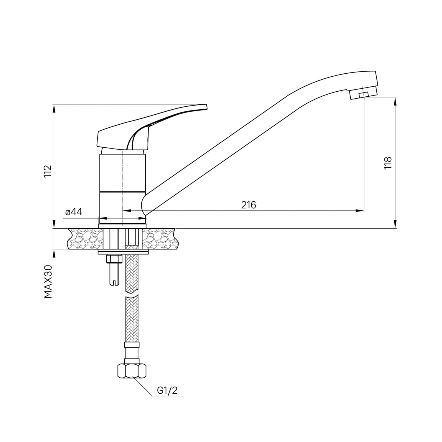 Смеситель для кухни, однозахватный, латунь, никель-хромовое покрытие, цвет - хром, керамический картридж 35 мм, пластиковый аэратор. В комлекте: гибкая подводка, крепёж. Упаковка: коробка, микрогофрокартон, индивид. мешок.
