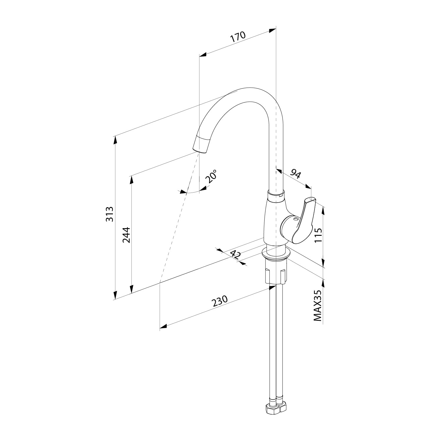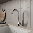 Смеситель для кухни, однозахватный, латунь,никель-хромовое покрытие, цвет - хром, керамический картридж 35 мм, пластиковый аэратор. В комлекте: гибкая подводка, крепёж. Упаковка: коробка, микрогофрокартон, индивид. мешок.