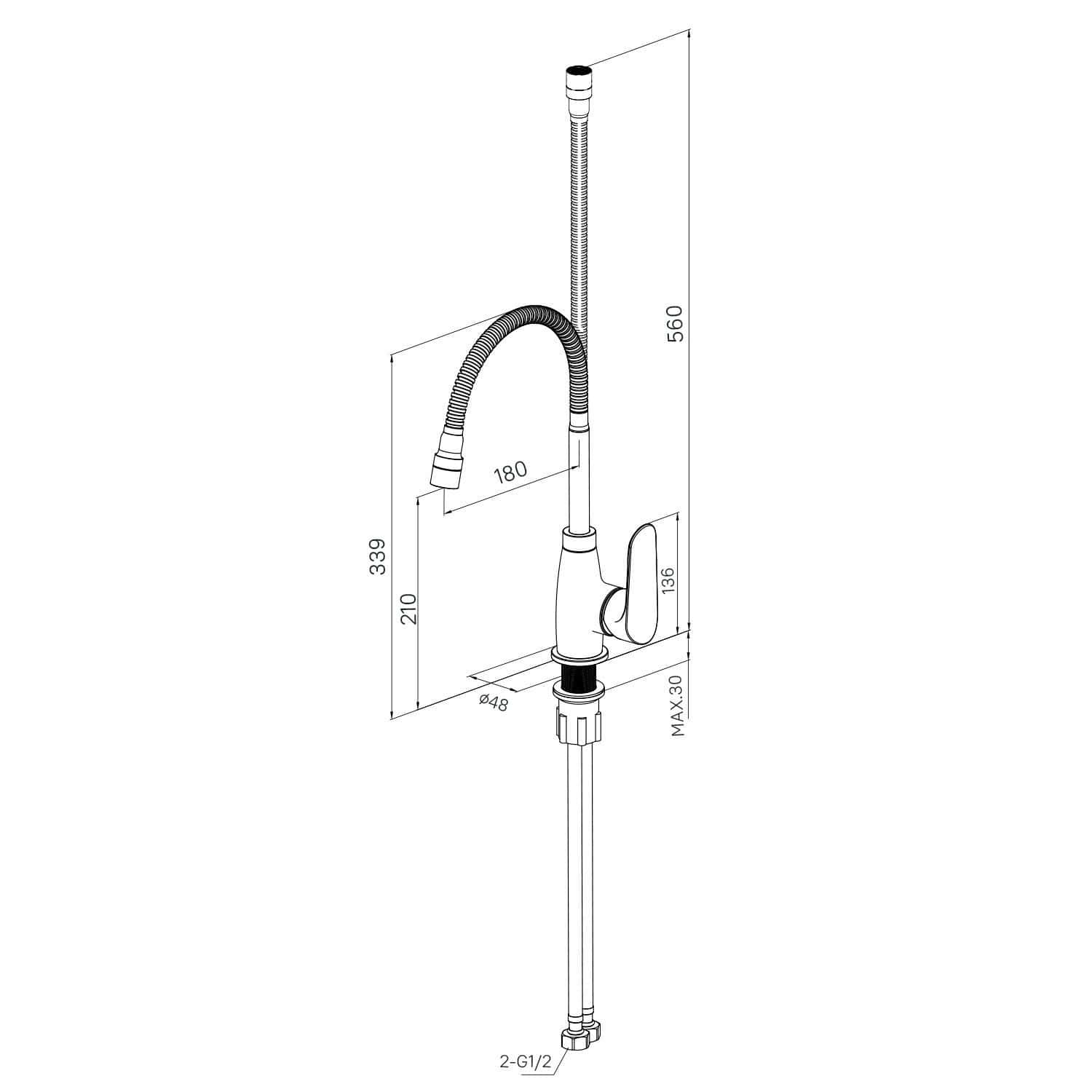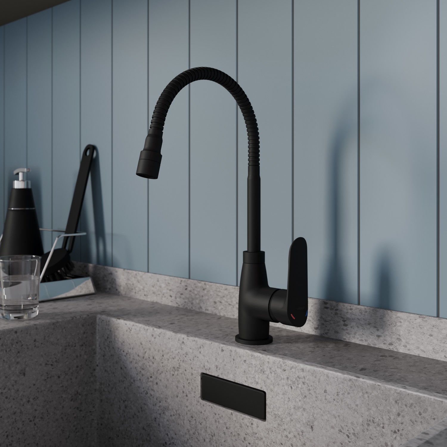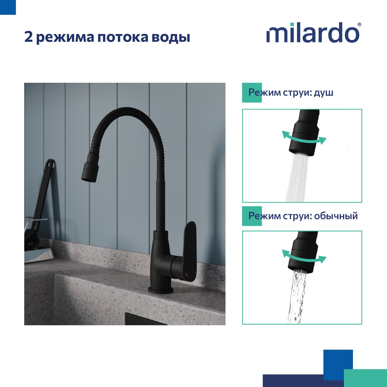 Смеситель для кухни с гибким изливом и душевой двухрежимной насадкой, однозахватный, латунь, электрофоретическое покрытие, керамический картридж 35 мм. В комлекте: гибкая подводка, крепёж. Упаковка: коробка, микрогофрокартон, индивид. мешок.