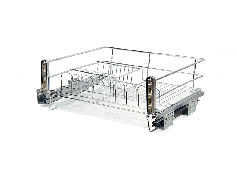 Выдвижная корзина-сушка призвана рационально организовать зону хранения посуды.