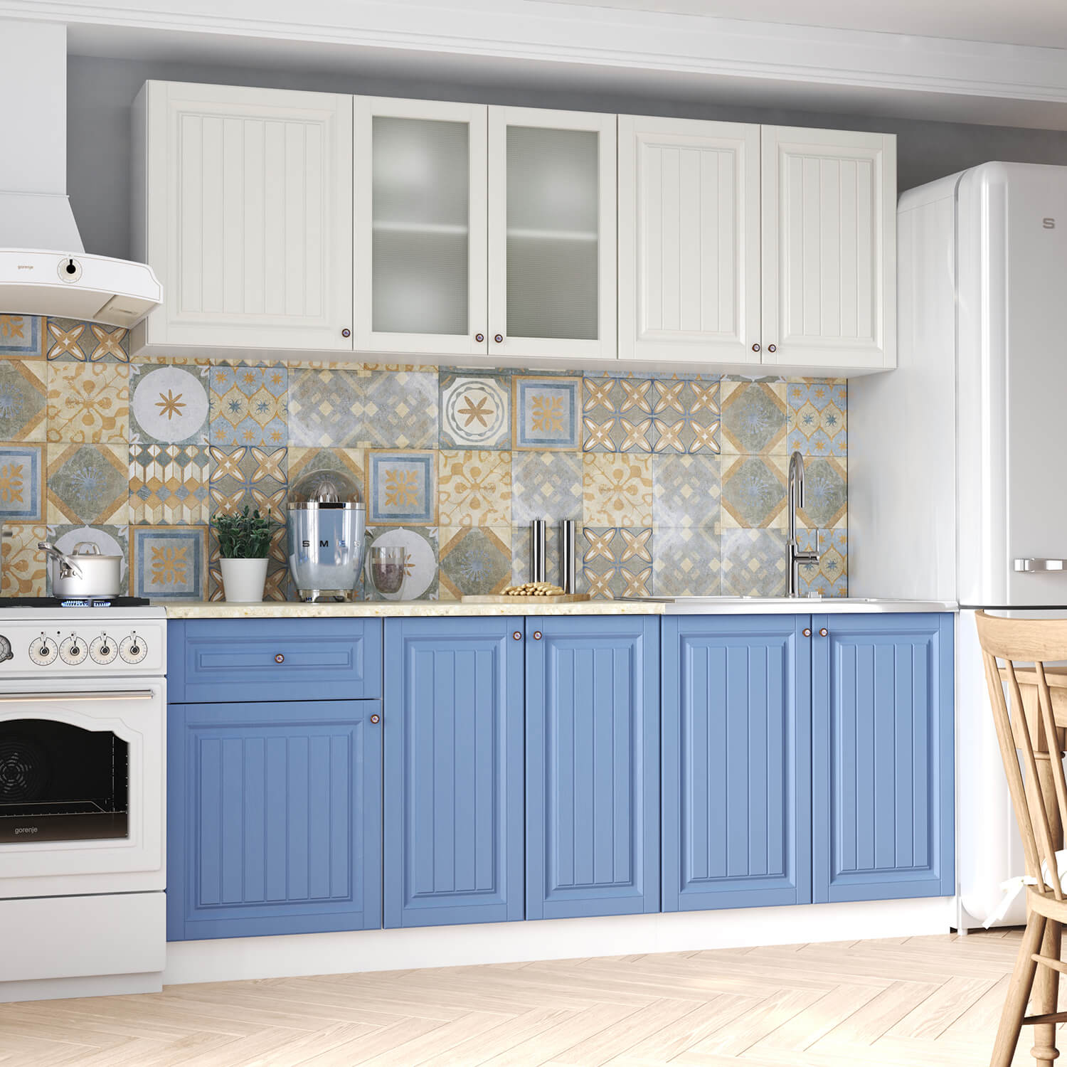 Кухня Хозяюшка 2,0 Акация Белая-Деним доступна к заказу в различных цветовых исполнениях, подходящих к любому интерьеру обеденной зоны.