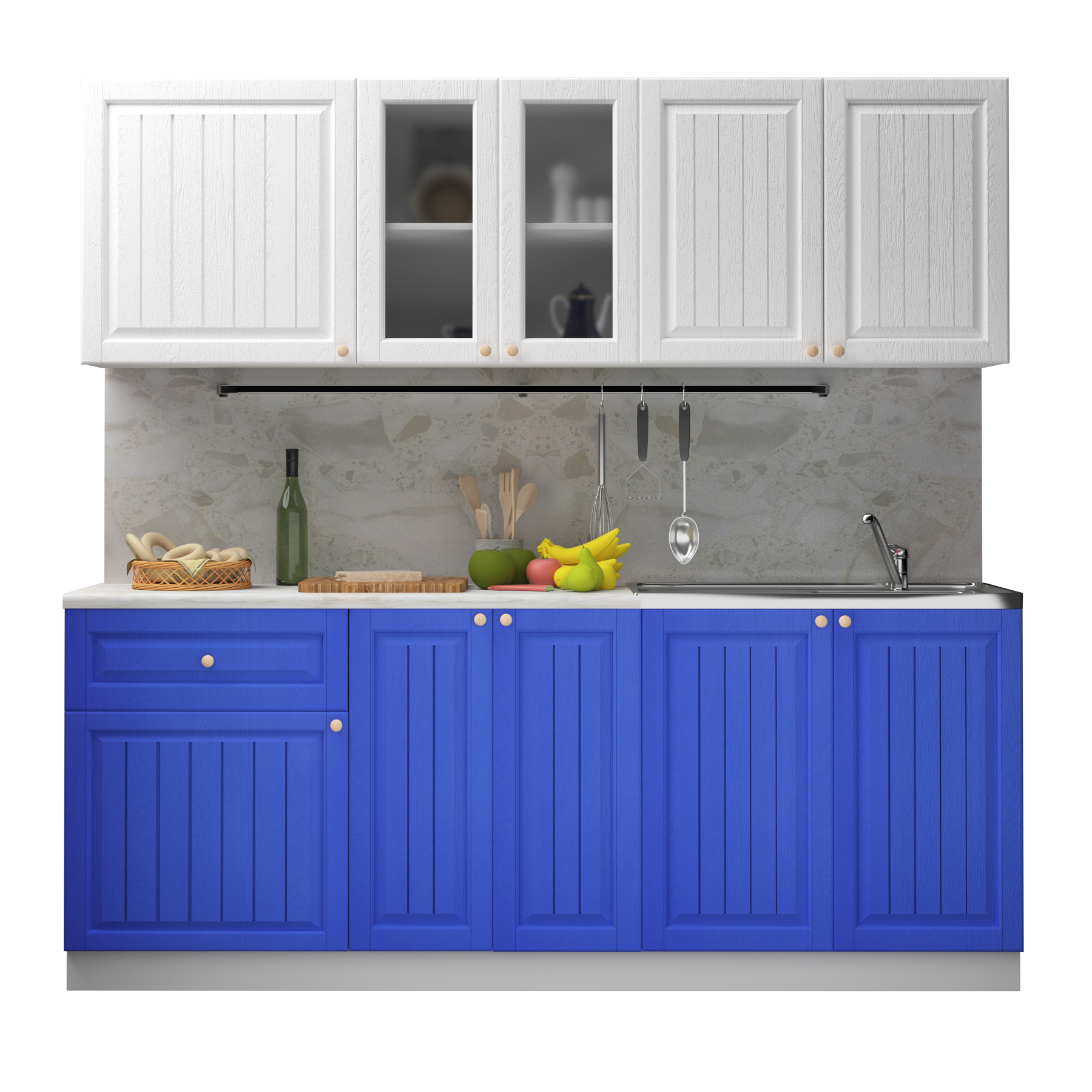 Кухня Хозяюшка 2,0 Акация Белая-Деним, материал корпуса - ЛДСП, габариты 2000x600x2100 мм.