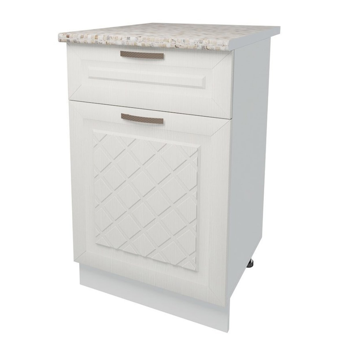 Столешница выполнена в цвете Перлино, что придает ей изысканный вид. Ее размеры составляют 500 мм в ширину, 450 мм в глубину и 600 мм в глубину столешницы.