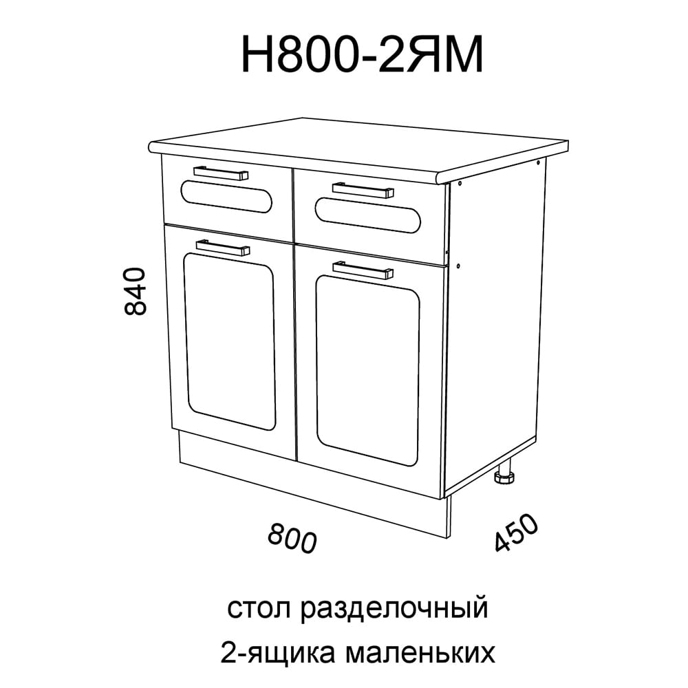 Материал корпус:ЛДСП Материал фасад:МДФ Высота 840 мм Ширина 800 мм Глубина 450 мм Глубина по столешнице 600 мм Столешница: Калаката