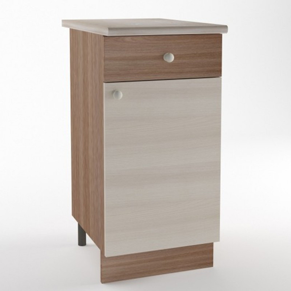 Особенностью стола является наличие ящика, что позволяет удобно хранить кухонные принадлежности и аксессуары.