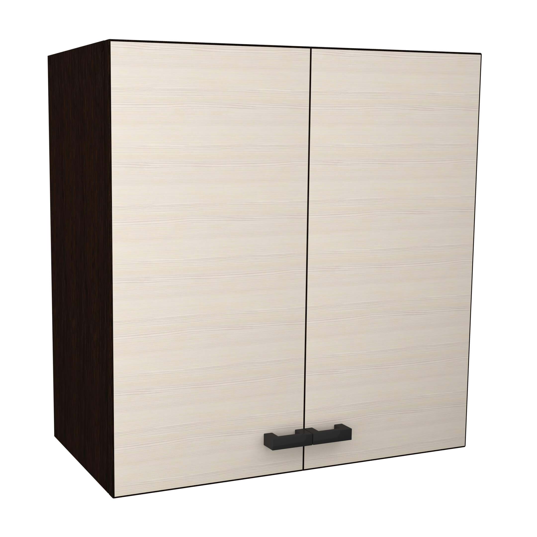 Материал и конструкция: корпус и фасад шкафа выполнены из качественного ЛДСП, что обеспечивает долговечность и надежность изделия. Распашные двери шкафа оснащены пластиковой фурнитурой черного цвета, что придает ему современный и стильный вид.