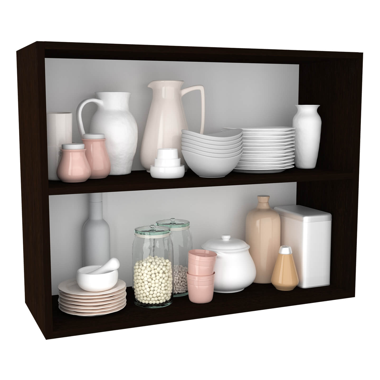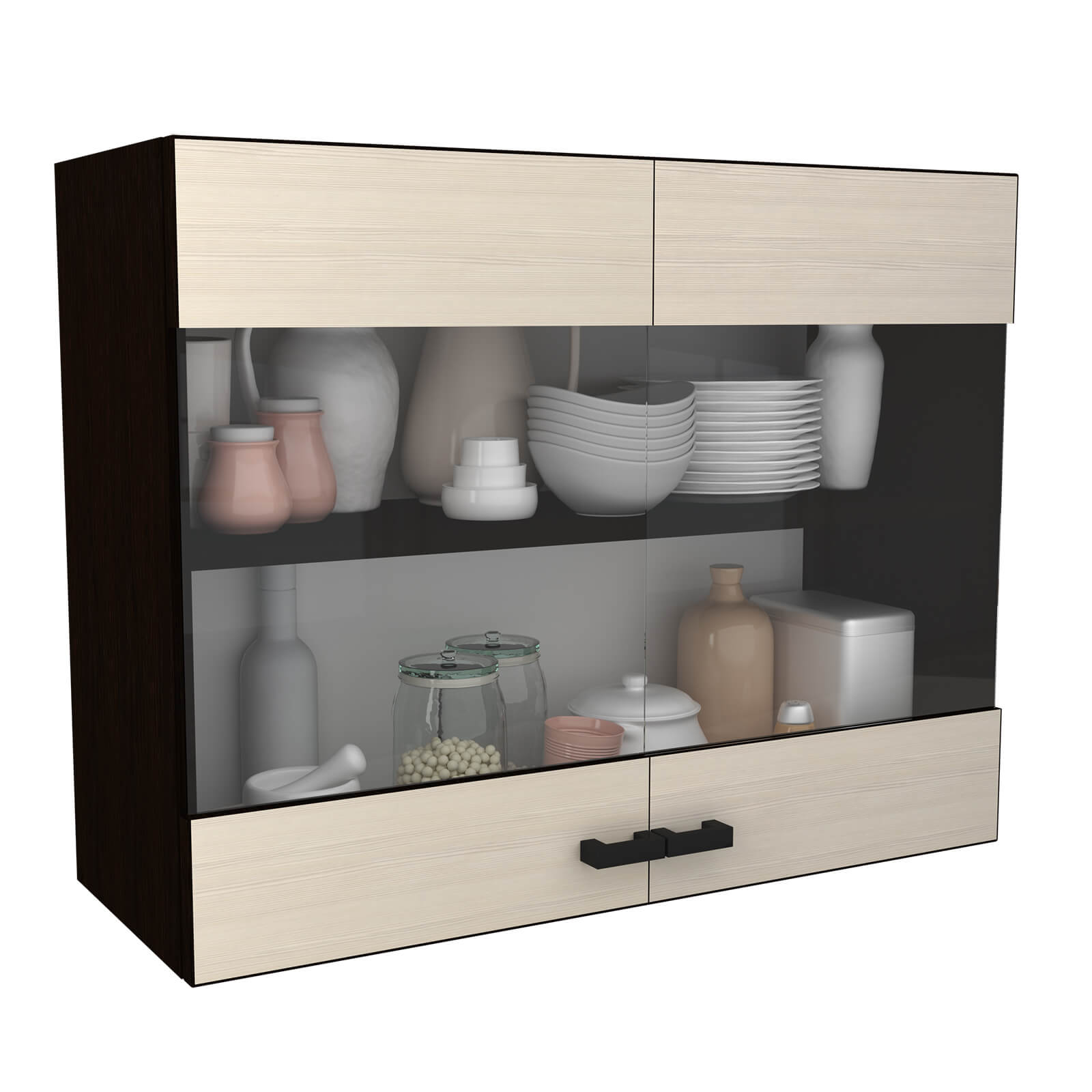 Шкаф имеет две распашные двери, выполненные из того же материала, что и корпус. Это обеспечивает единство стиля и гармоничное сочетание с другими элементами кухни.