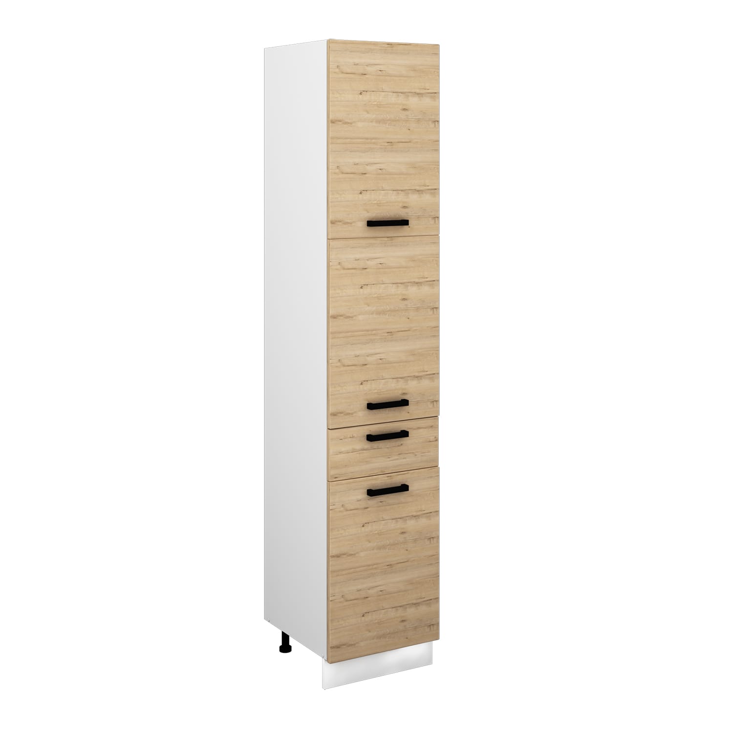 Пенал оснащен пятью полками, что позволяет разместить на них большое количество посуды и кухонных принадлежностей. Три распашные дверцы обеспечивают удобный доступ к содержимому пенала.