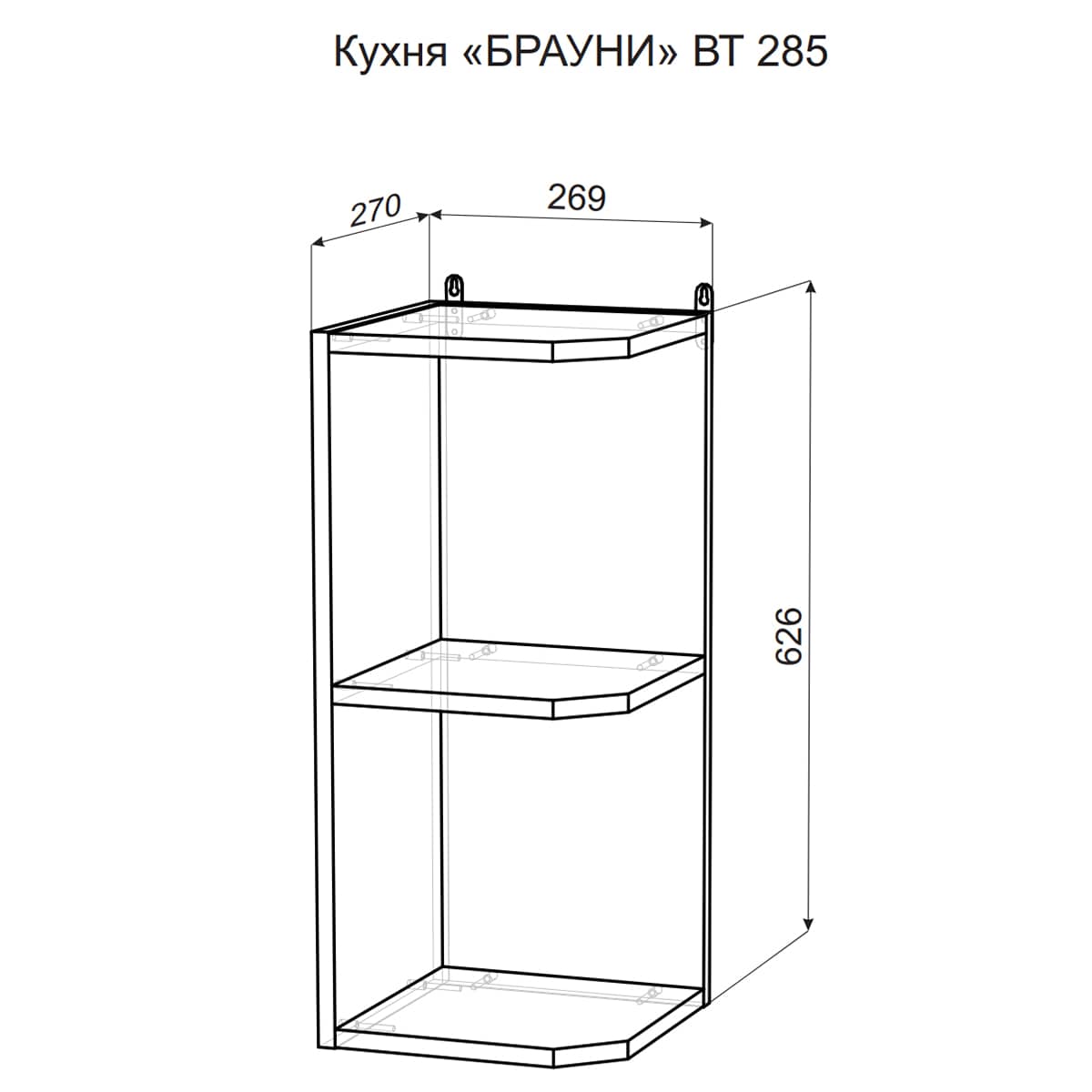 Размеры шкафа составляют 626 мм в высоту, 269 мм в ширину и 270 мм в глубину.