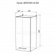 Шкаф имеет размеры 626 мм в высоту, 300 мм в ширину и 290 мм в глубину, что позволяет разместить в нем достаточное количество посуды и кухонных принадлежностей. Конструкция шкафа включает в себя одну распашную дверь и секцию с полкой, что обеспечивает удобное хранение и легкий доступ к содержимому.