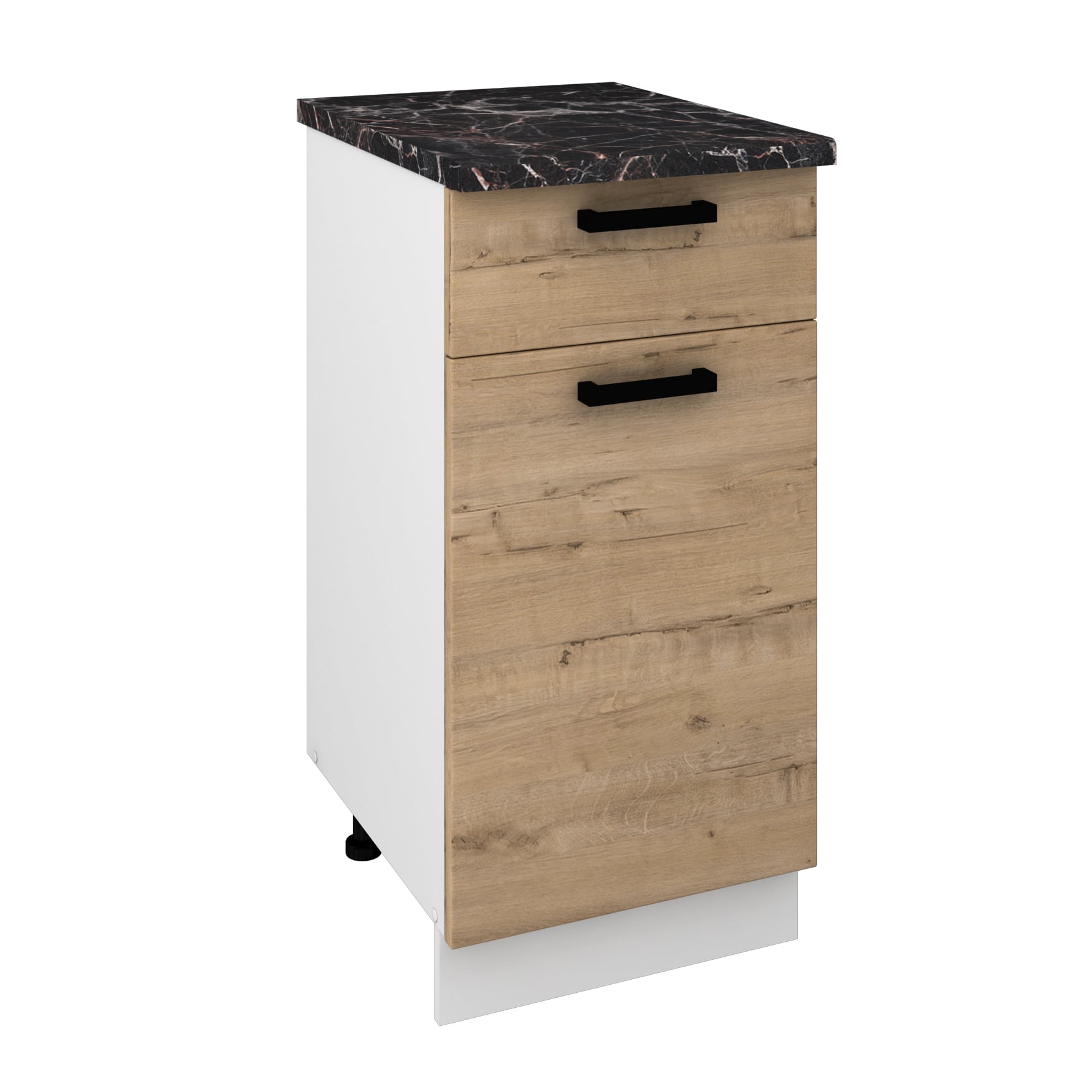 Стол разделочный ЭРА Н400-1Я Брауни представлен в белом цвете с фасадом дуб вотан, что придает ему изысканный и элегантный вид.