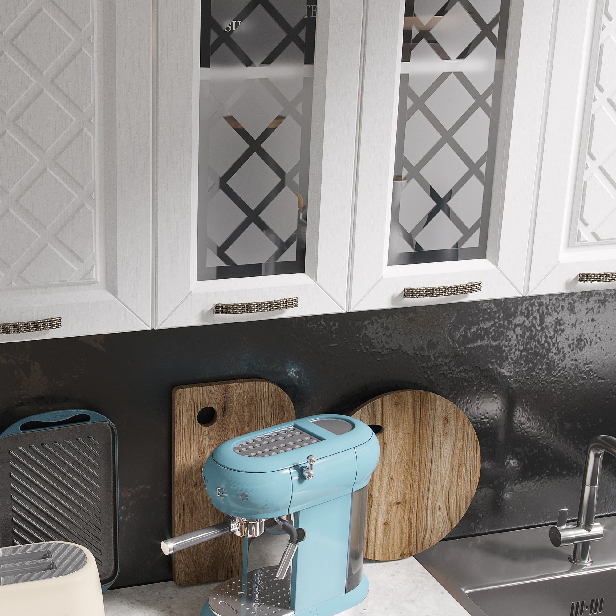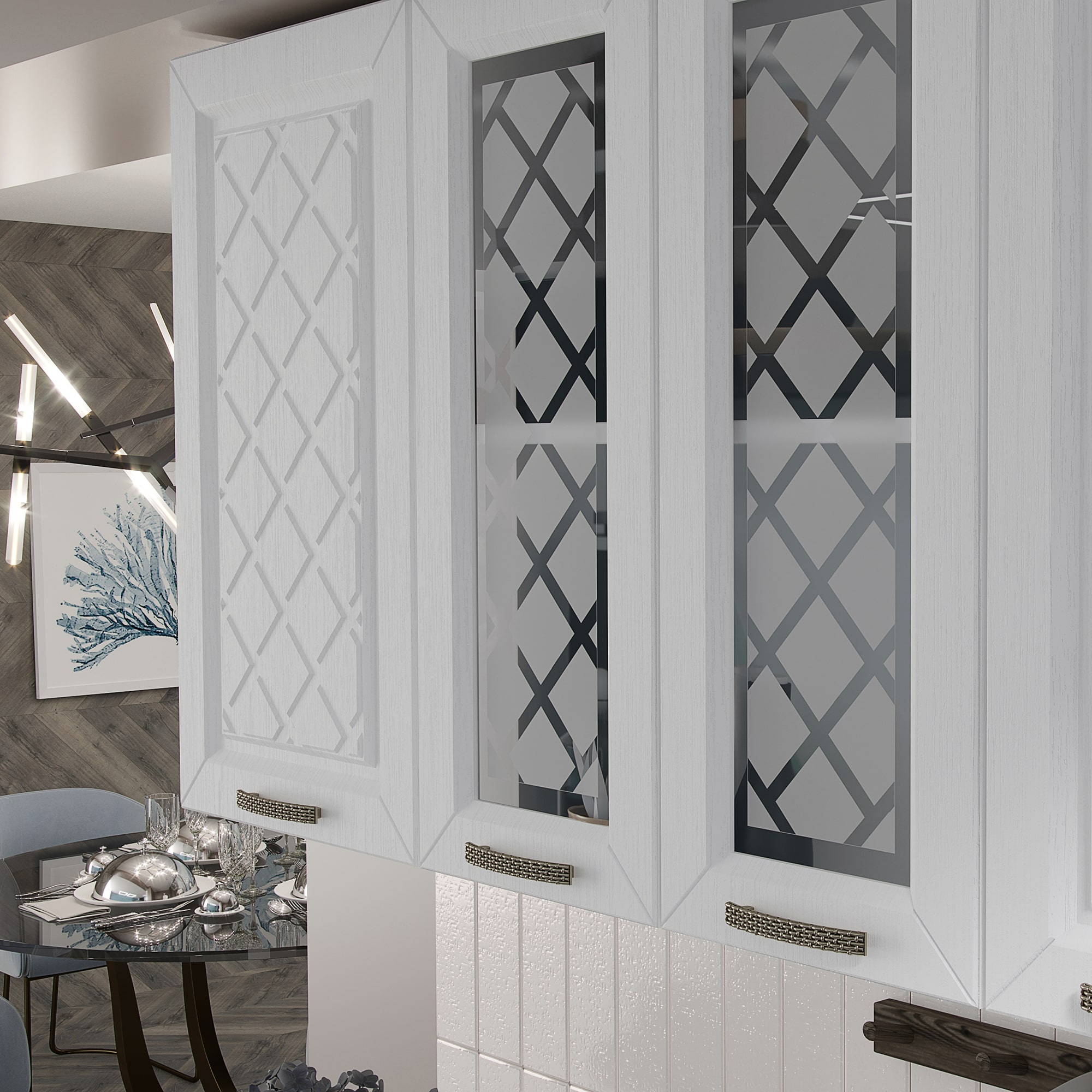 Кухня Агава 1600 Белый/Акация белая/Сапфир доступна к заказу в различных цветовых исполнениях, подходящих к любому интерьеру обеденной зоны.