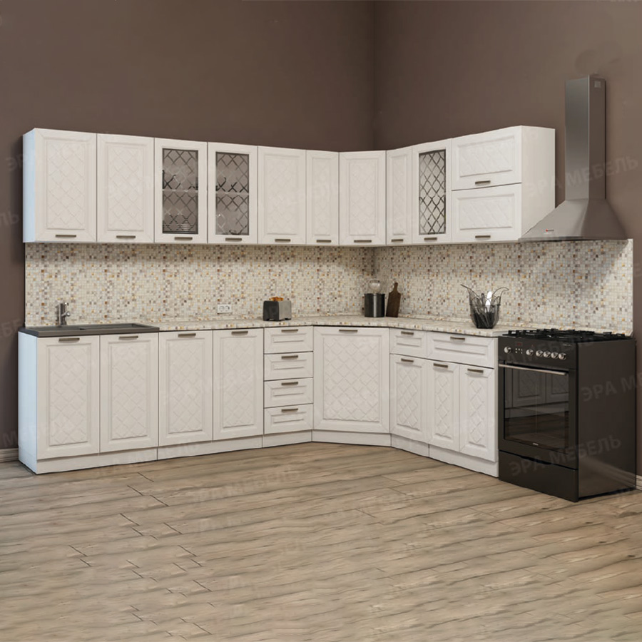 Кухня АГАВА светлая угловая 2850х1850 доступна к заказу в различных цветовых исполнениях, подходящих к любому интерьеру обеденной зоны.