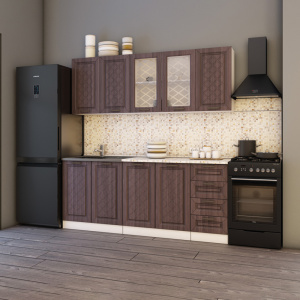 Кухня Агава темная 3000, материал корпуса - ЛДСП, габариты 3000x600x2100 мм.
