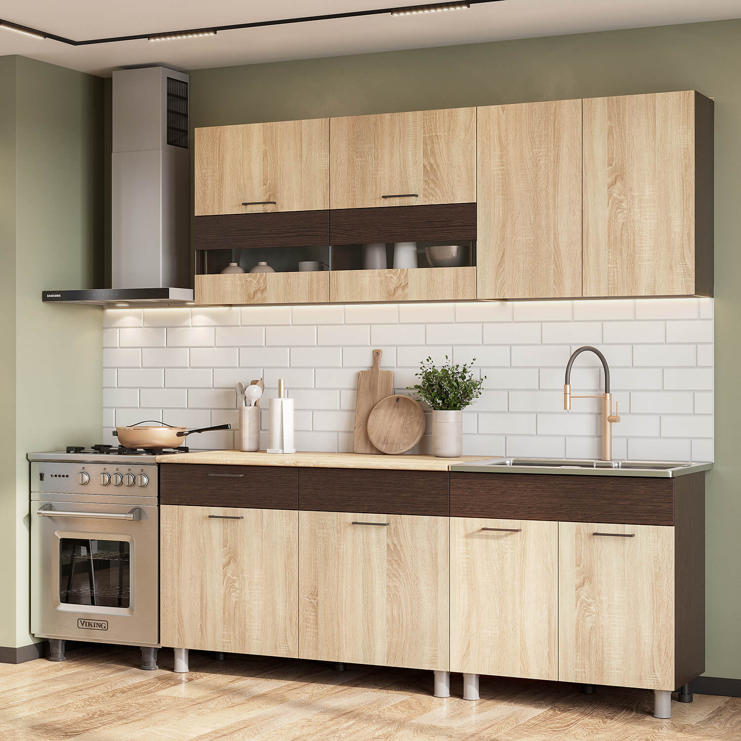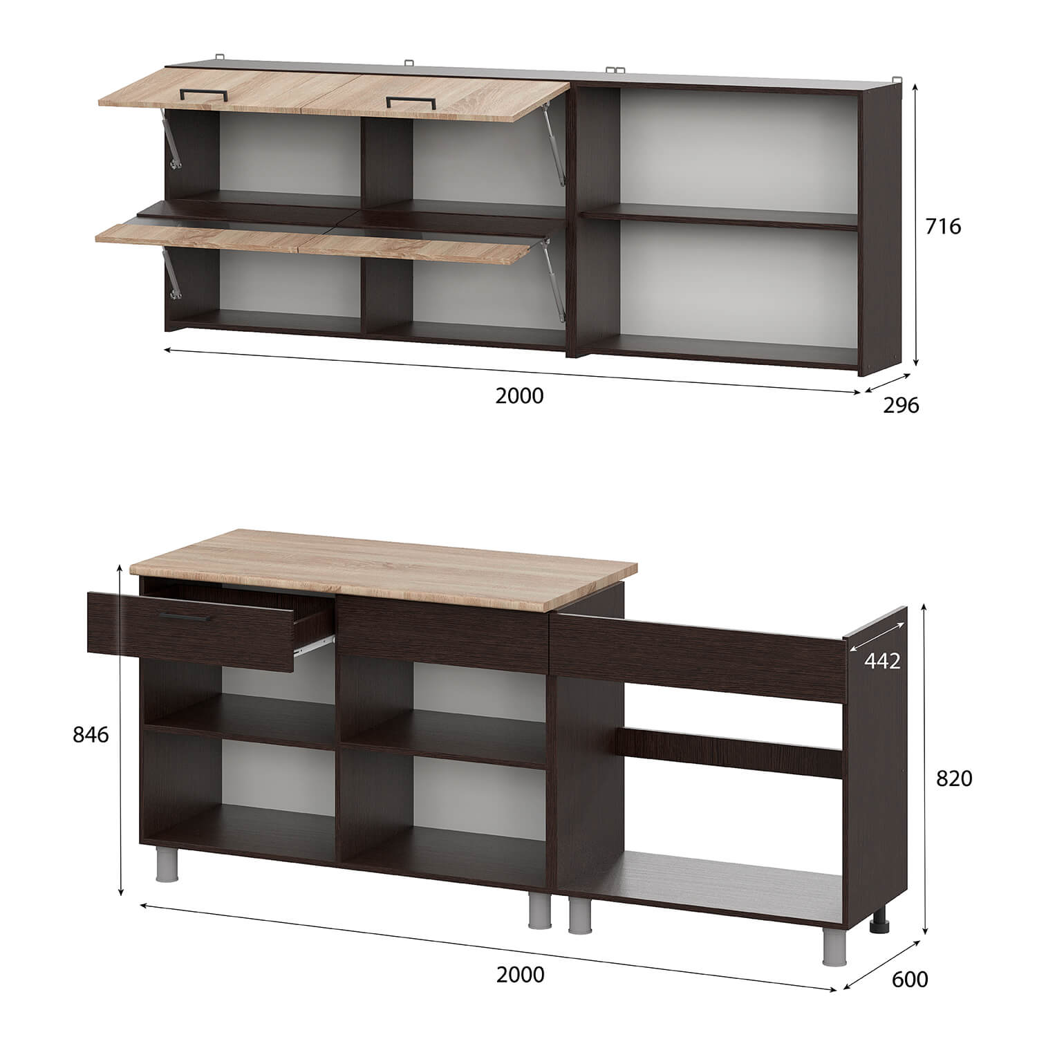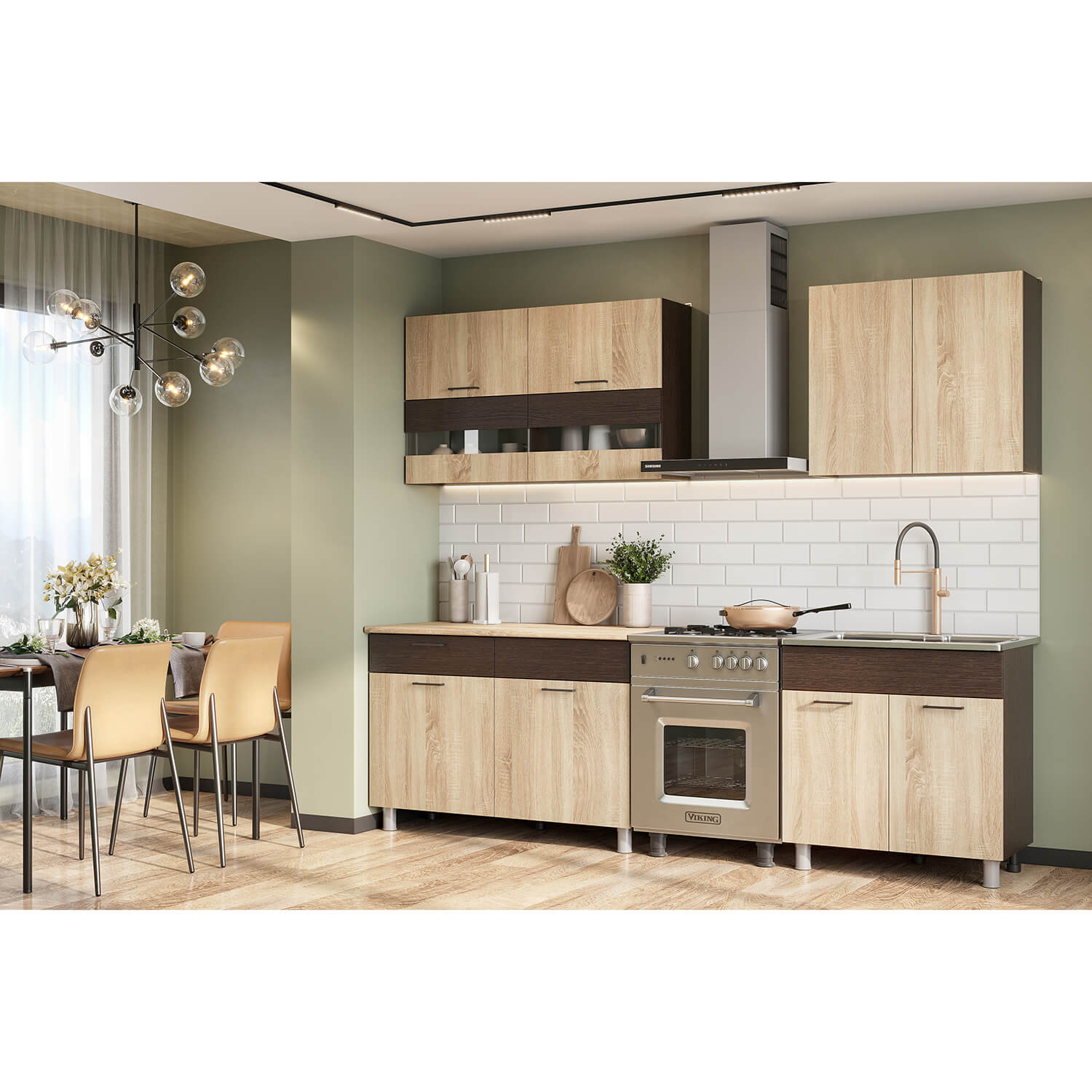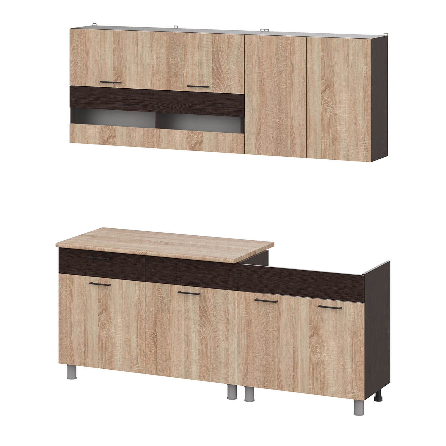 Кухня Босфор 2,0 Дуб Венге/Дуб Сонома, материал корпуса - ЛДСП, габариты 2000x600x2170 мм. Материал фасада: ЛДСП