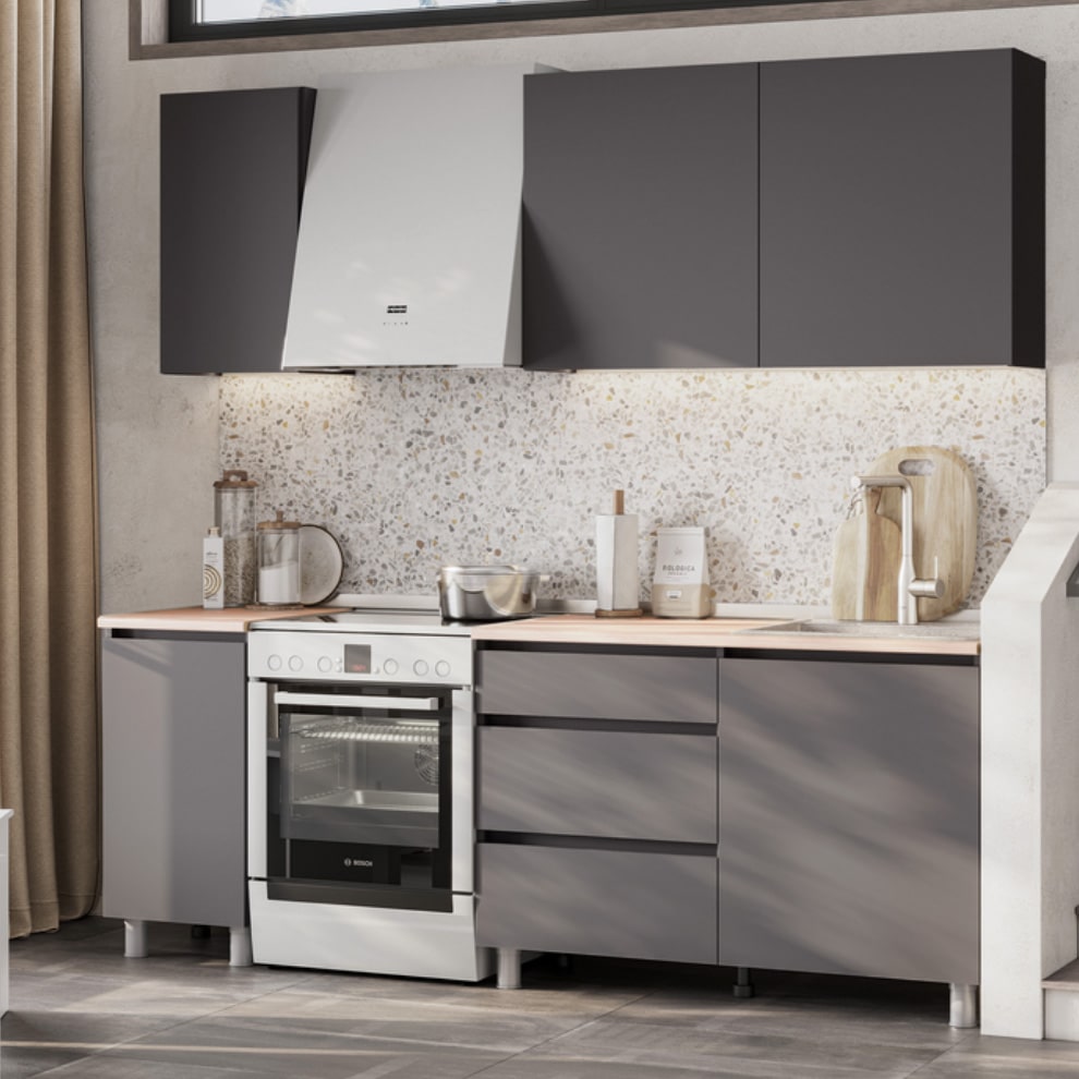 Кухня Денвер 1600 Графит серый доступна к заказу в различных цветовых исполнениях, подходящих к любому интерьеру обеденной зоны.