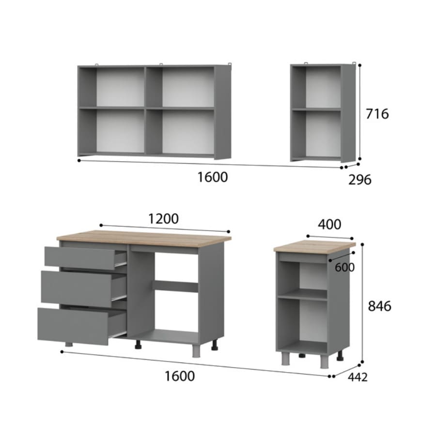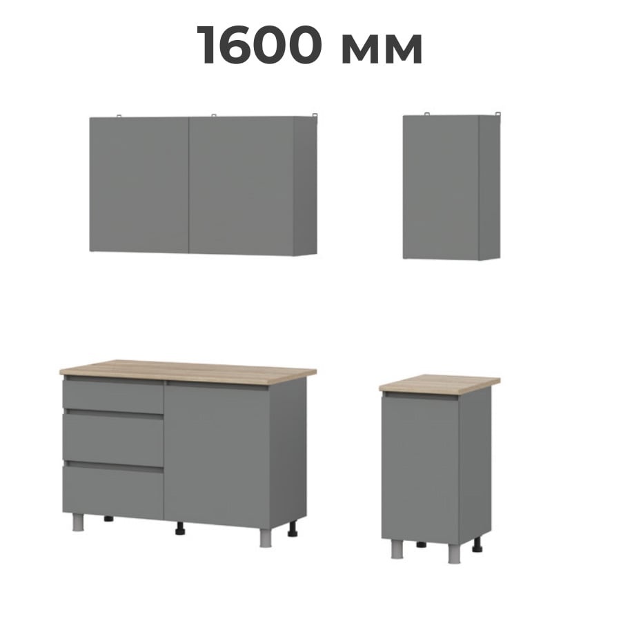 Кухня Денвер 1600 Графит серый, материал корпуса - ЛДСП, габариты 1600x600x2200 мм.