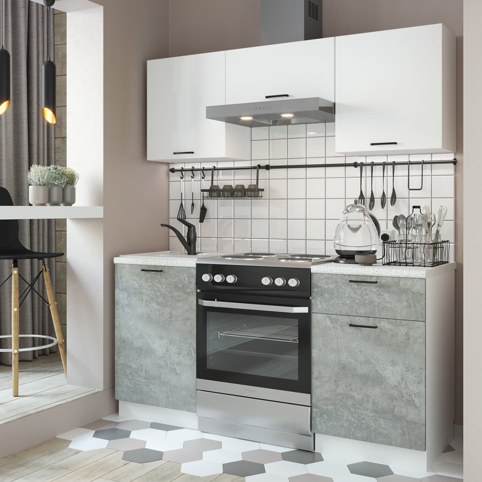 Кухня Дуся 1,6 Белый бриллиант/Цемент, материал корпуса - ЛДСП, габариты 1600x600x1970 мм.
