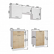 В комплект вхожит: кухонные модули, столешница, цоколь, фурнитура.