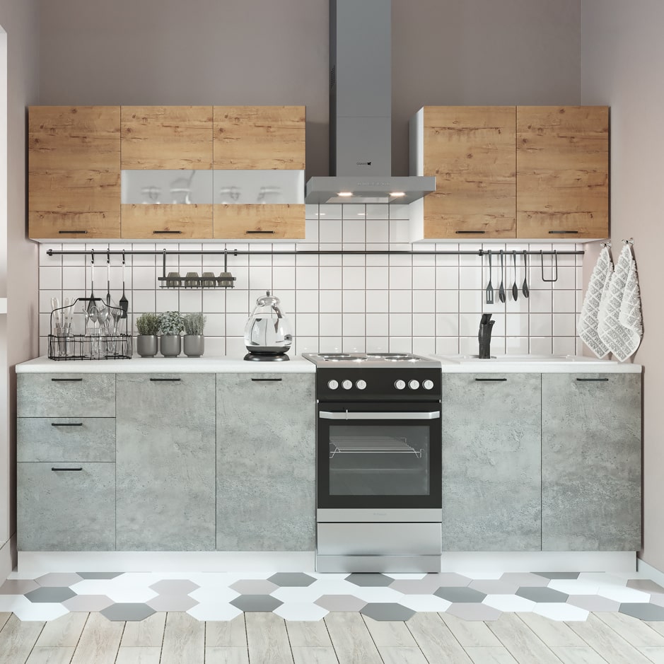 Кухня Дуся 2,0 Дуб бунратти/Цемент, материал корпуса - ЛДСП, габариты 2000x600x1970 мм.