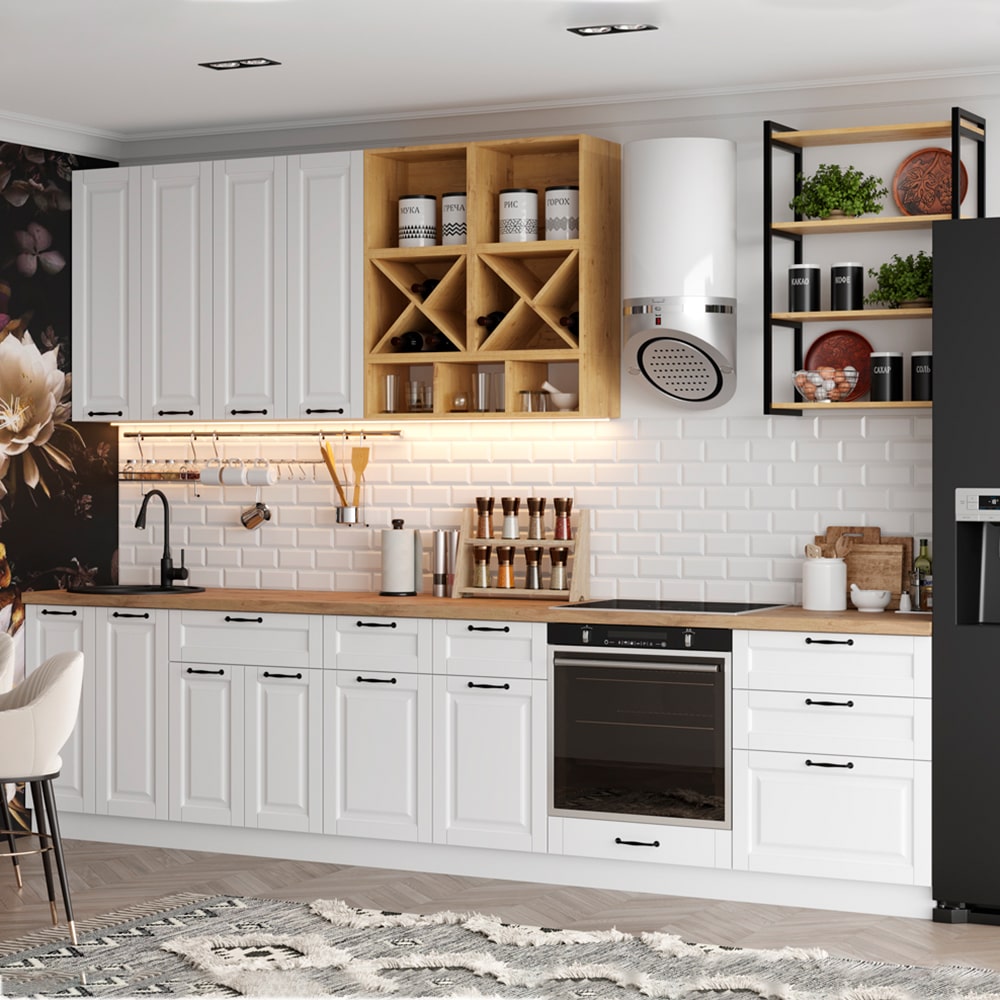 Кухонный гарнитур Гарда 3200 Белый эмалит доступна к заказу в различных цветовых исполнениях, подходящих к любому интерьеру обеденной зоны.